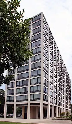 - ↑ Yves Laframboise, « Miles Van der Rohe à l'île des Sœurs » dans Vie des arts, numéro 59, Été 1970 [(fr) lire en ligne].