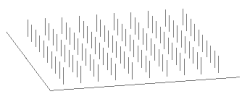 Plus formellement, le verger d'Euclide est l'ensemble des segments de droite joignant le point (i, j, 0) au point (i, j, 1), où i et j sont des entiers strictement positifs.