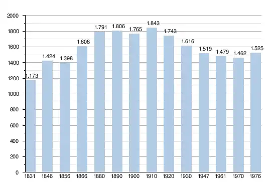 Les chiffres des années 1831 à 1970 tiennent compte des chiffres des anciennes communes fusionnées.