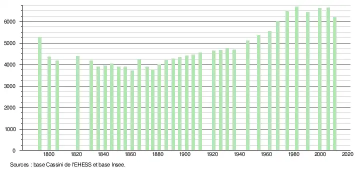 (Sources : Ldh/EHESS/Cassini jusqu'en 1999[16] puis Insee à partir de 2006[17].)