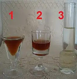 Verre dont l'épaisseur des parois réduit la contenance à 1 centilitre, soit deux cuillères à café, contre 2,5 à 3 cl pour un verre à liqueur normal. Existe aussi en version verre de vin (région d'Auvergne).