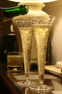 - la flûte : verre étroit et haut, plus spécialement destiné au champagne ;