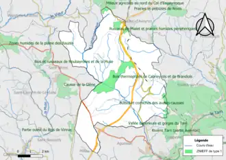- ↑ « ZNIEFF le « Bois thermophiles de Cabrieyrols et de Brandiols » - fiche descriptive », sur le site de l'inventaire national du patrimoine naturel (consulté le ).