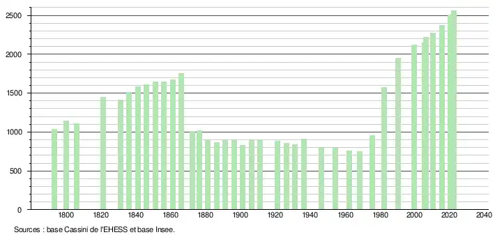 - ↑ Fiches Insee - Populations de référence de la commune pour les années 2006, 2007, 2008, 2009, 2010, 2011, 2012, 2013, 2014, 2015, 2016, 2017, 2018, 2019, 2020, 2021 et 2022.