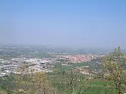 Verucchio et la vallée du Marecchia vues depuis Montebello de Torriana. | ||||