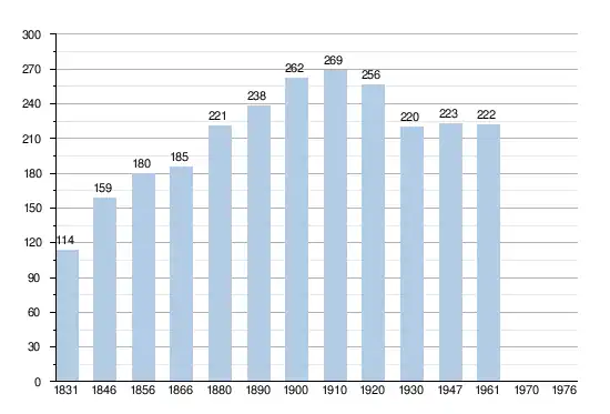 - Sources : INS, Rem. : 1831 jusqu'en 1970 = recensements, 1976 = nombre d'habitants au 31 décembre.