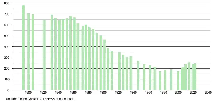 - ↑ Population municipale de référence en vigueur au 1er janvier 2025, millésimée 2022, définie dans les limites territoriales en vigueur au 1er janvier 2024, date de référence statistique : 1er janvier 2022.