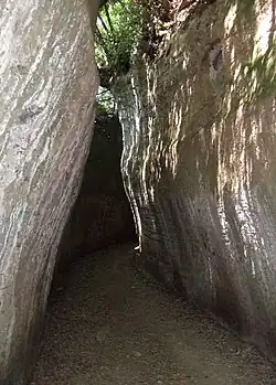 La Via Cava (au pluriel en italien : Vie Cave, nommées aussi Cavoni), est le nom donné à des chemins d'origine étrusque, profondes et étroites tranchées taillées dans le tuf des collines. Leur profondeur par rapport au sol naturel peut atteindre, en certains endroits, une quinzaine de mètres. Une vingtaine d'entre elles relient les sites des nécropoles étrusques de Sorano, Sovana, Cerveteri et Pitigliano[1]. Il s'agit d'aménagements typiques et uniques caractéristiques de l'Area del Tufo en Toscane.