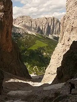 La via ferrata Tridentina est une via ferrata située dans le groupe Sella dans le massif des Dolomites, juste en aval du col Gardena, du côté du val Badia.