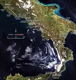 La Via Capua - Rhegium (Via ab Regio ad Capuam), connue comme Via Popilia ou Via Annia, une importante voie romaine construite en 132 av.J.-C.. En cette année, la magistrature romaine décrète la construction d’une route qui relirait Rome avec la Civitas foederata Regium, à l’extrême pointe de la péninsule italienne.