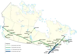 - Winnipeg-Churchill (service suspendu entre Gillam et Churchill)