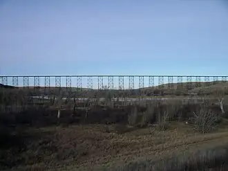 Ce pont est un des plus grands ponts de chemin de fer du Canada. Il a été construit dans le cadre d'un important itinéraire de détournement de la Crowsnest Pass entre Lethbridge et Fort Macleod. Le franchissement de la rivière se faisait précédemment sur un pont à chevalets de bois mesurant 894 m (2933 pieds) de long et 20 m (65 pieds) de haut, déjà en soi une impressionnante structure.