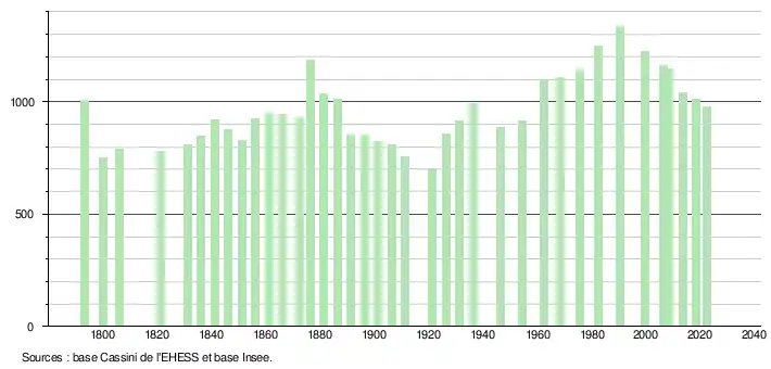 - ↑ Fiches Insee - Populations de référence de la commune pour les années 2006, 2007, 2008, 2009, 2010, 2011, 2012, 2013, 2014, 2015, 2016, 2017, 2018, 2019, 2020, 2021 et 2022.