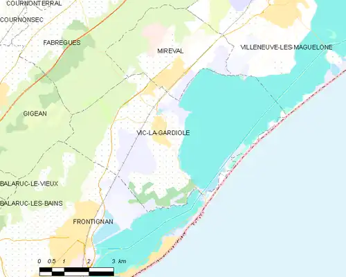 - ↑ « Orthodromie entre Vic-la-Gardiole et Villeneuve-lès-Maguelone », sur fr.distance.to (consulté le ).