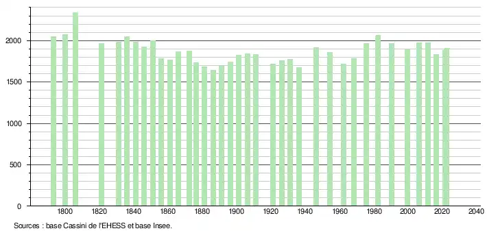 - ↑ Fiches Insee - Populations de référence de la commune pour les années 2006, 2007, 2008, 2009, 2010, 2011, 2012, 2013, 2014, 2015, 2016, 2017, 2018, 2019, 2020, 2021 et 2022.