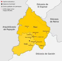 Il comprend les municipalités d'Inzá et de Páez du département du Cauca ce qui correspond à un territoire d'une superficie de 2 085 km2 divisé en 10 paroisses.
