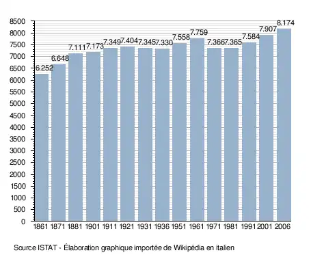 - ↑ (it) Popolazione residente e bilancio demografico sur le site de l'ISTAT.