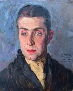 Victor Francen peint par Fernand Allard l'Olivier. signé et dédicacé à droite : "à Francen, cordialement, 1928 à La Panne". - 1923 : La Neige sur les pas d'Henri Etiévant : Marc Romenay