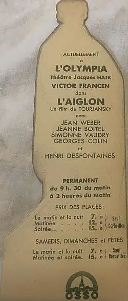 Marque page publicitaire pour le film "l'Aiglon"
