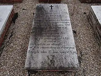 - Albert de Broglie (1821-1901), 4e duc de Broglie, ambassadeur de France, président du conseil, député puis sénateur de l'Eure, membre de l'Académie française, marié en 1845 avec Pauline de Galard-Béarn (1825-1860), dont le portrait est aussi peint par Ingres. Dont postérité ;