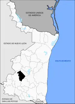 Elle est limitrophe au nord-ouest et au nord-est de la municipalité de Güémez, à l'ouest de celle de Jaumave, et au sud-est de celles de Llera et de Casas[4].