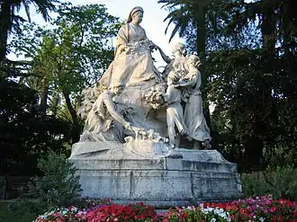 Victoria se rend régulièrement en Europe continentale pendant ses vacances. Sa ville de prédilection est Nice. Elle affectionne particulièrement la douceur des hivers sur la Côte d’Azur, où elle loue régulièrement pendant deux mois des appartements dans le grand Hôtel Régina de Nice, dans le quartier résidentiel de Cimiez, assistant même, le , à une bataille de fleurs sur la promenade des Anglais[183]. Un monument est érigé à sa mémoire en 1910, devant l'hôtel Régina[184]. Lorsqu'elle est en France, sa protection est assurée par le commissaire Xavier Paoli, un policier à maintien de diplomate[Quoi ?] qui sera son invité personnel lors du jubilé.