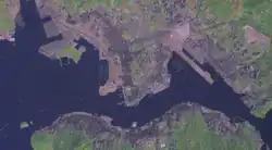 La géologie autour du port est constituée d'une copule granitique qui, par endroits, est intensément altérée[12].