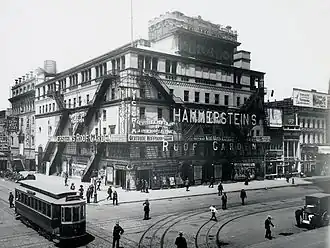 Le Victoria Theatre était un important théâtre de vaudeville américain au début du XXe siècle. Le magnat du théâtre Oscar Hammerstein I l'inaugure en 1899[1] à l'angle nord-ouest de la Septième Avenue et de la 42e Rue, le long de Longacre Square à New York (aujourd'hui Times Square)[2]. Comme le théâtre était étroitement associé au Paradise Roof Garden, une salle de vaudeville semi-extérieure bâtie au-dessus, les deux salles étaient connues sous le nom commun de Hammerstein's[3]. Le Victoria proposait 950 places assises[1]. Le Victoria ferme ses portes en 1915 et est démoli pour laisser place au Rialto Theatre.