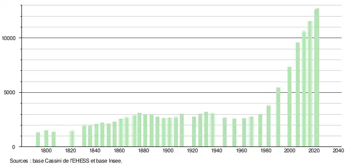 - ↑ Fiches Insee - Populations de référence de la commune pour les années 2006, 2007, 2008, 2009, 2010, 2011, 2012, 2013, 2014, 2015, 2016, 2017, 2018, 2019, 2020, 2021 et 2022.
