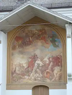 Sur la paroi extérieure Nord, sous un large auvent, est apposé une grande fresque de Wilhelm Lindenschmit l'Ancien (de) de l'année 1830, qui représente la bataille des paysans de Sendling 1705. La fresque a également été restaurée en 2003-2004.
