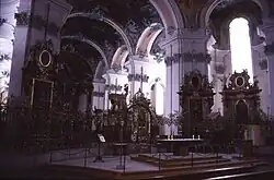 - les bâtiments du couvent et la bibliothèque, « Klosterplatz mit neuer Pfalz, Zeughausflügel, Kinderkapelle Frauenarbeitschuhle und Karlstor »,