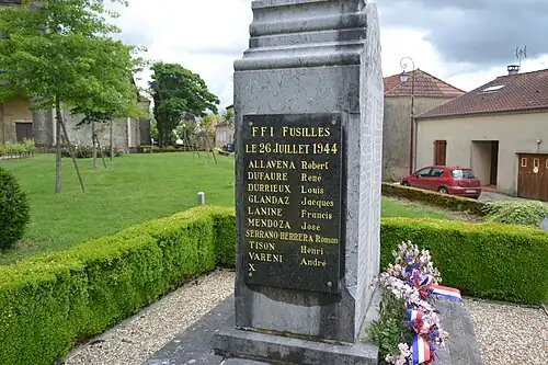 - Le monument aux morts, surmonté de la statue du Poilu au repos, réalisée par Étienne Camus.