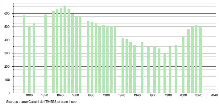 - ↑ Fiches Insee - Populations de référence de la commune pour les années 2006, 2007, 2008, 2009, 2010, 2011, 2012, 2013, 2014, 2015, 2016, 2017, 2018, 2019, 2020, 2021 et 2022.