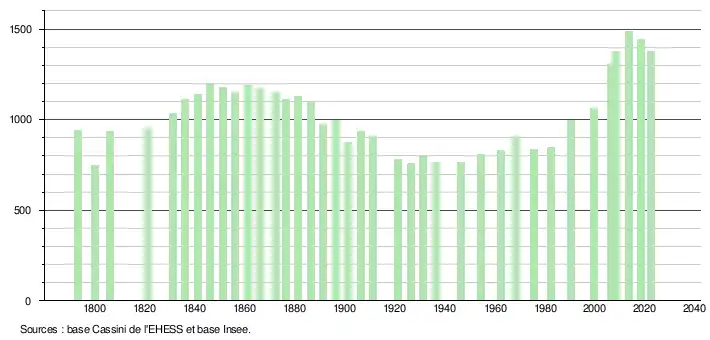 - ↑ Fiches Insee - Populations de référence de la commune pour les années 2006, 2007, 2008, 2009, 2010, 2011, 2012, 2013, 2014, 2015, 2016, 2017, 2018, 2019, 2020, 2021 et 2022.