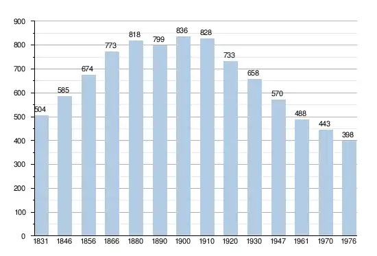 Source: DGS, 1831 à 1970=recensements population, 1976= habitants au 31 décembre