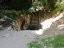 À l'intérieur de l'aqueduc, se trouve une cavité, manifestement artificielle, qui dès 1797, est signalé par le docteur Roux[18] ; à ce sujet, est précisé dans l'ouvrage de Robert Bedon :