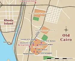 Le quartier du Caire copte fait également partie du Vieux-Caire. Il comprend des ruines de fortifications romaines et de nombreuses églises anciennes. Les sites touristiques présents sont le musée copte, la forteresse de Babylone, l'« église suspendue » et d'autres églises coptes.