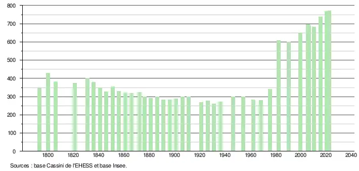 (Sources : Ldh/EHESS/Cassini jusqu'en 1999[19] puis Insee à partir de 2006[26].)