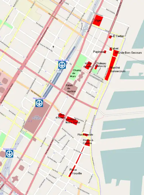 | Site(s) touristique(s) | Vieux-Port de Montréal Fleuve Saint-Laurent Place d'Youville Pointe-à-Callière, musée d'archéologie et d'histoire de Montréal Basilique Notre-Dame de Montréal |