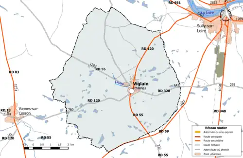 - ↑ « Orthodromie entre Viglain et Villemurlin », sur fr.distance.to (consulté le ).