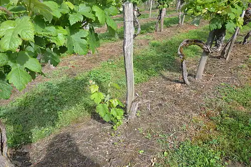 La vigne témoigne de modes de culture disparus avec la crise du phylloxéra, comme la plantation en pieds doubles disposés en carré. Les ceps sont mélangés les uns aux autres, comme cela se pratiquait autrefois. Leur positionnement rappelle le travail qu'effectuaient à l'époque les attelages de bœufs.