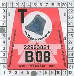 - ↑ Vignette électronique (e-vignette), Office fédéral de la douane et de la sécurité des frontières, 2023