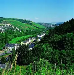 Le vignoble de Moselle est l'une des 13 régions viticoles allemandes (Weinbaugebiete) d'appellation d'origine contrôlée (Qualitätswein, anciennement QbA, et Prädikatswein). La région couvre les vallées de la Moselle, de la Sarre et de la Ruwer depuis l'embouchure de la Moselle à Coblence et en amont jusqu'aux environs de Trèves dans le Land de Rhénanie-Palatinat[2]. Avant le , la région s'appelait « Moselle-Sarre-Ruwer », mais elle a changé pour un nom considéré comme plus convivial[3]. Les villes constituant la région sont Sarrebourg, Konz, Trèves, Schweich, Bernkastel-Kues, Traben-Trarbach, Zell, Cochem et Coblence. Les plus grands vignobles sont Piesport, Zell, Leiwen, Konzer Tälchen, Neumagen-Dhron, Mehring, Bernkastel-Kues et Trittenheim.
