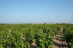 Pendant ce temps, en plaine, les grands domaines appartenant à la noblesse s'étaient orientés vers la viticulture extensive. Ce fut le cas à Candillargues sur les terres labourables appartenant à la famille De La Croix, à Marsillargues avec le marquis de Calvisson. Il y eut surproduction. Et tous ces petits vins issus de vignes arbustives prirent le chemin de la distillerie avec le soutien financier, en particulier, des Bonnier de la Mosson, banquiers à Montpellier[24]. Cet état de fait, organisé ou non, pris une tout autre proportion, dès 1780, avec l'arrivée en Languedoc de l'aramon, cépage gros producteur qui mit « fin à bien des velléités de production qualitative[28] ». À la veille de la Révolution française, environ 50 % des terres sont couvertes de vigne autour de Béziers.