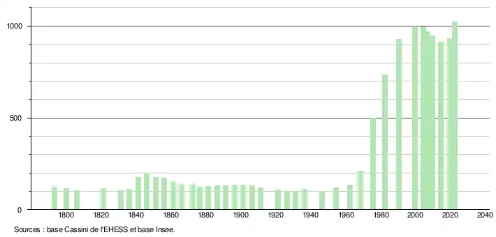 - ↑ Fiches Insee - Populations de référence de la commune pour les années 2006, 2007, 2008, 2009, 2010, 2011, 2012, 2013, 2014, 2015, 2016, 2017, 2018, 2019, 2020, 2021 et 2022.