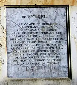 Le prince Henri de Prusse lui dédie une plaque sur son obélisque de Rheinsberg.
