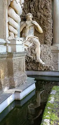 Cette demeure, avec ses jets d'eau, ses cascades artificielles est une des plus belles et des plus imposantes de Frascati. Derrière, se trouve une construction, avec une succession de chutes d'eau traversant un bosquet de vieux chênes verts dans lequel prend place un groupe de statues fantastiques représentant Neptune ou Atlas chancelant sous son énorme fardeau. À gauche de cet édifice se trouve une chapelle dédiée à saint Sébastien, patron de la famille Aldobrandini. Dans l'autre aile, appelée Parnassus, il y avait autrefois un orgue activé par l'eau et les murs étaient couverts de fresques du Domenichino. Les travaux hydrauliques ont été réalisés par Giovanni Fontana.