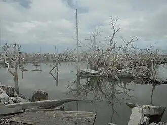 Ruines après la baisse du niveau des eaux.