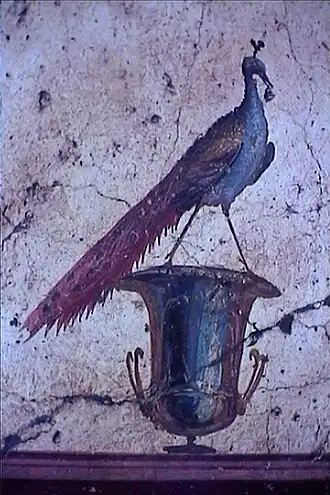 Un thème est cependant particulier et récurrent dans la décoration picturale de la villa et semble être une allusion à Poppée, épouse de Néron : la représentation du paon. L'oiseau est en effet un attribut de Junon, épouse de Jupiter, équivalent divin de l'Empereur, et se trouve reproduit à maintes reprises dans les différentes pièces.