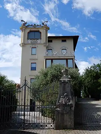 La villa se dresse en position panoramique avec vue sur le lac de Viverone. Le bâtiment, qui présente un style éclectique aux influences de l'Art nouveau et du maniérisme. Des statues de dragon décorent sa tour d'angle, qui termine avec une loggia[1].